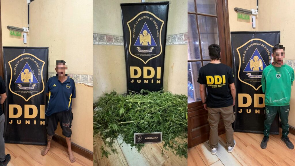 En el mismo lugar, además, se hallaron en el patio trasero cuatro plantas de marihuana, con un peso total de 7,233 kilogramos, lo que derivó en la aprehensión de otro hombre de 40 años, propietario del inmueble, por infracción a la Ley 23.737.